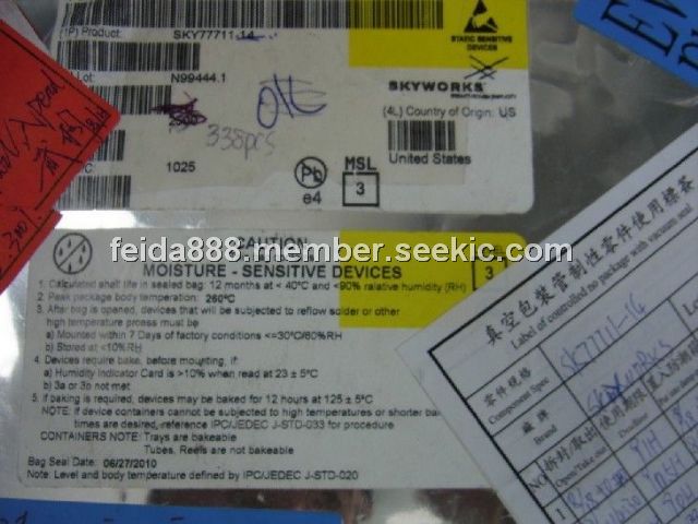 SKY77711-14 features: (1)Low voltage positive bias supply 3.2 V to 4.2 V; (2); (3)High efficiency - 40% @ 28 dBm; (4)Large dynamic range; (5)Small, low profile package: 3 mm x 3 mm x 0.9 mm; 10-pad configuration; (6)Power down control; (7)InGaP; (8)Supports low collector voltage operation; (9)Digital Enable; (10)No VREF required; (11)CMOS compatible control signals.